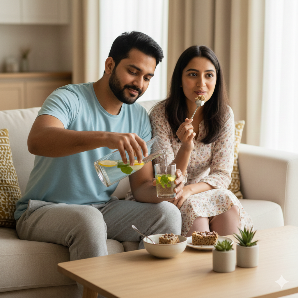 We combine Clinical Nutrition, Functional Medicine, Ayurveda, Eating Psychology, and Mind–Body Coaching, thoughtfully tailored to the Indian body, culture, and individual context. Our approach follows ICMR and NIN guidelines for Indians and focuses on optimising key wellness parameters—including nutrition, physical activity, hydration, gut health, stamina, fitness, supplementation, sleep quality, and energy levels—to support outcomes aligned with individual body type and wellness goals.