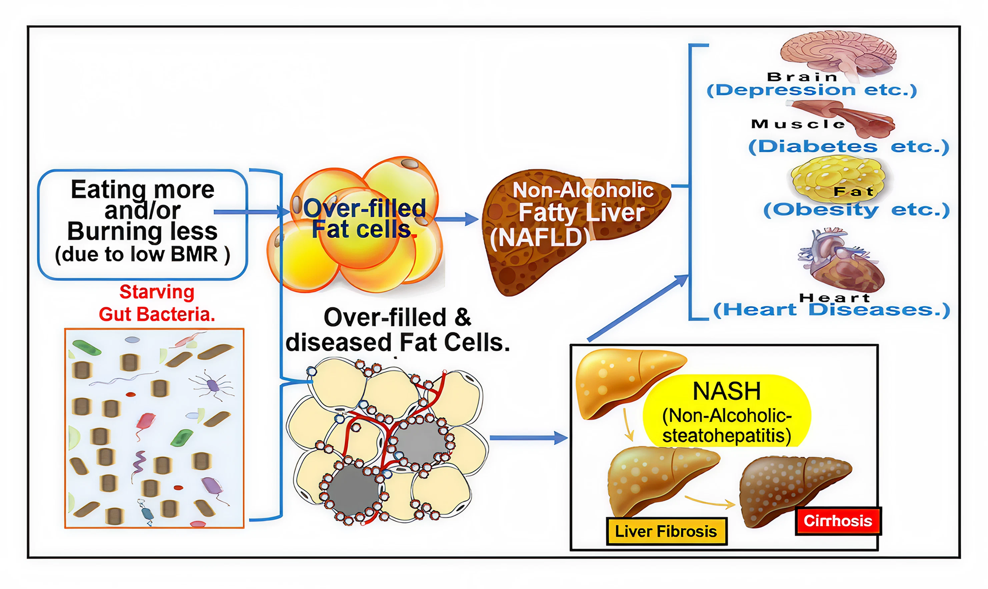 Starving gut bacteria: It aggravates NAFLD into more serious NASH etc. the only treatment for which may be Liver Transplant. So whenever you eat, remember to feed the gut bacteria also. Whole foods feed the Gut Bacteria.