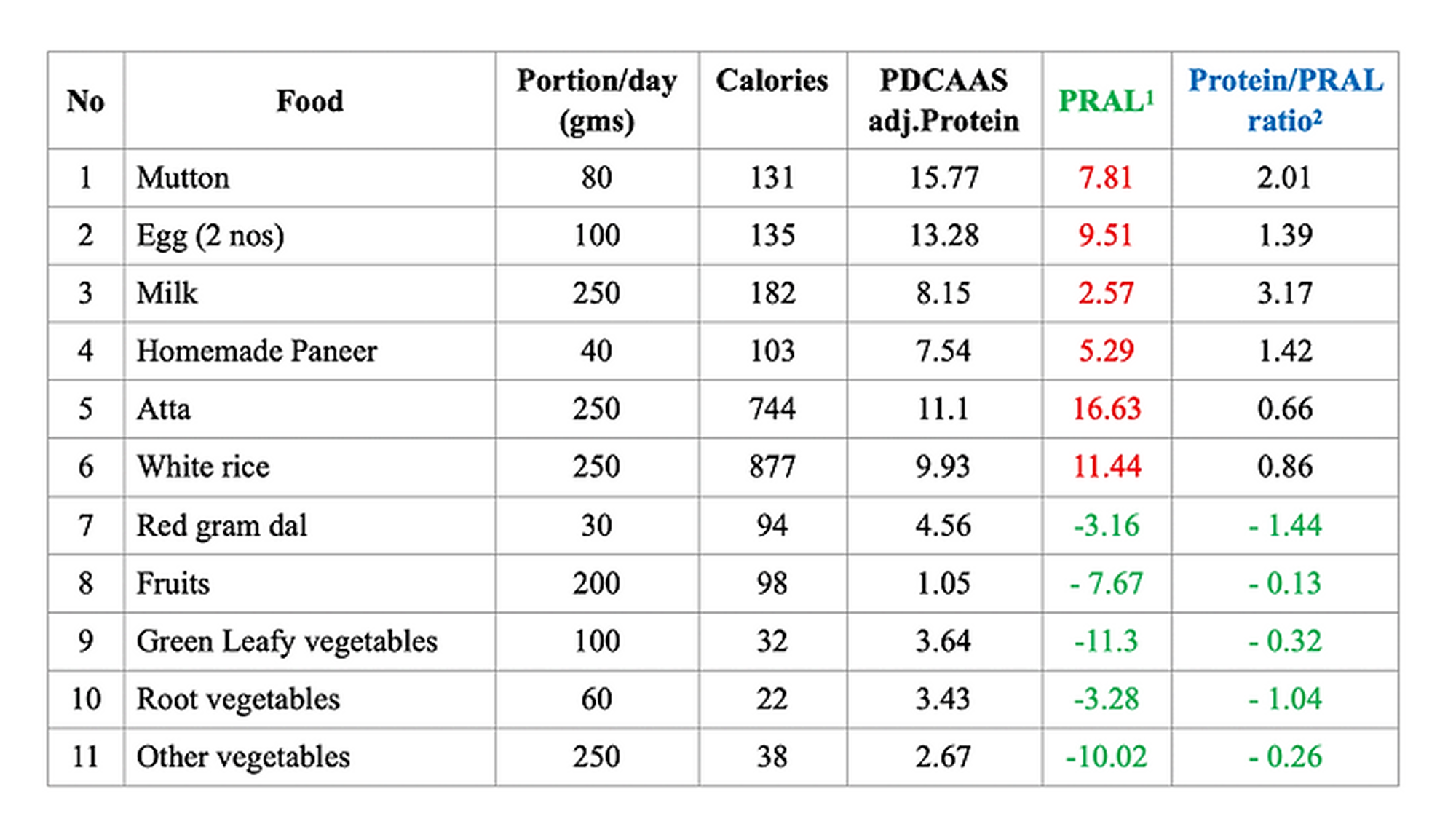 2. Protein/PRAL ratio indicates the load put on the kidney to maintain the desired Alkalinity for 1 gram of protein.From the above table it can be noticed that high protein foods can cause kidney related conditions resulting in HUA due to decreased uric acid excretion. Avoiding these foods will cause protein deficiency which increases IR that results in HUA. So, balancing the acidic foods with alkalizing foods is the long term healthy solution.